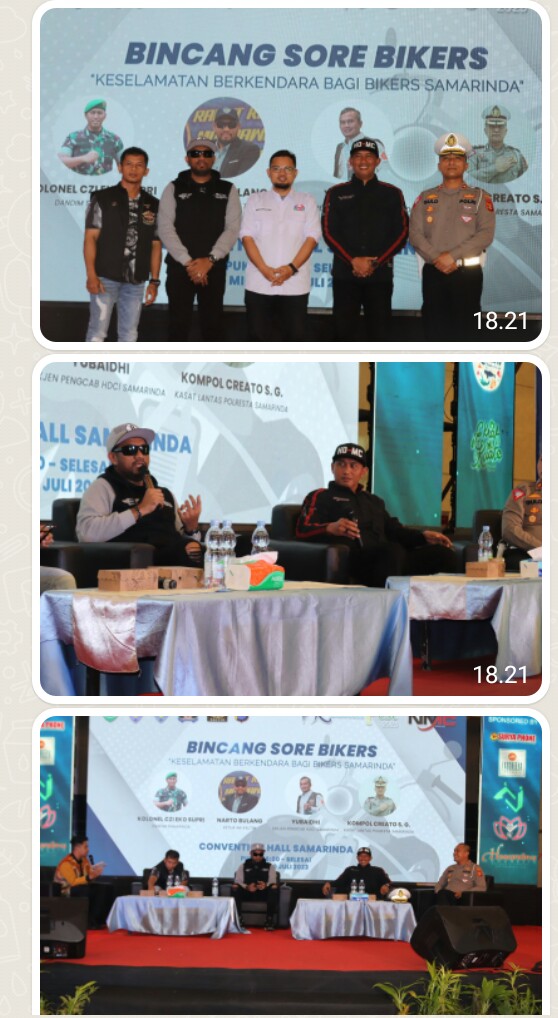 Samarinda, Komandan Kodim 0901/Samarinda Kolonel Czi Eko Supri Setiawan, S.Sos.,M.Han Hadiri Acara Bincang Sore Bikers, dengan tema, Keselamatan Berkendara Bagi Bikers Samarinda, bertempat di main stage Kaltim Festival 2023, Convention Hall Samarinda, Minggu (9/7/23)sore