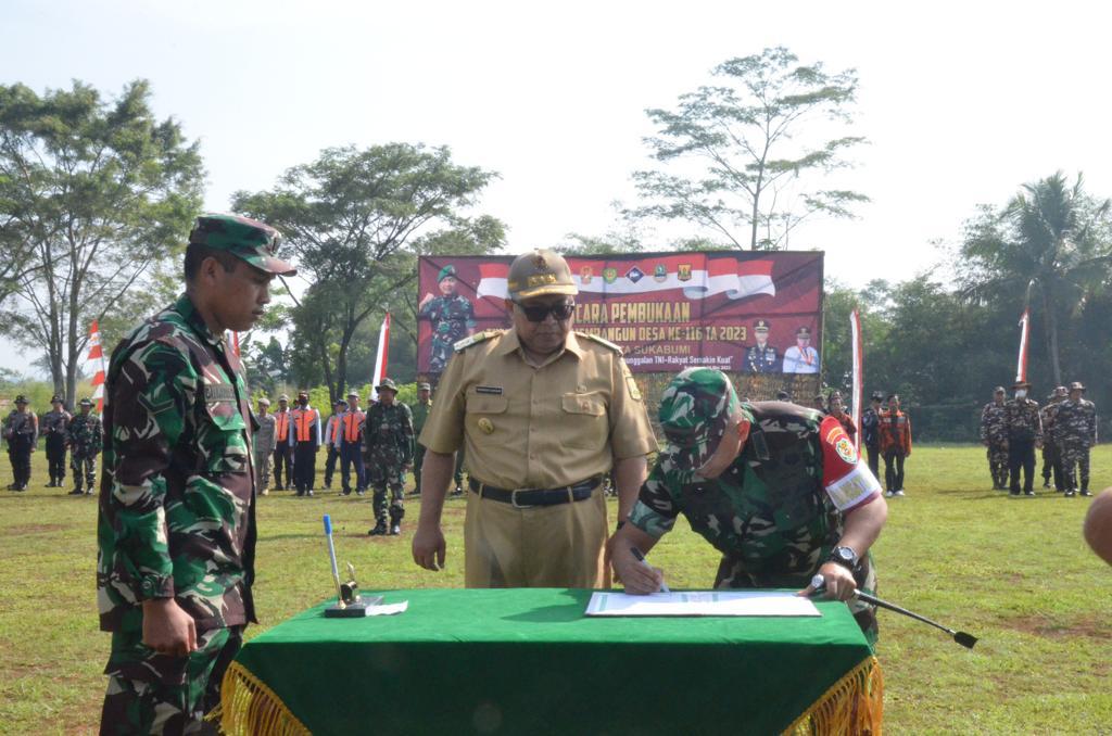 Kota Sukabumi, Upacara Pembukaan TNI Manunggal Membangun Desa (TMMD) ke-116 Tahun Anggaran 2023 di Wilayah Kodim 0607/Kota Sukabumi dihadiri oleh Kasrem 061/Sk dan Pejabat Kodam lll/Slw. Pembukaan TMMD untuk wilayah kota Sukabumi dilaksanakan di lapangan boring desa sasagaran kecamatan kebon pedes kabupaten Sukabumi, Rabu (10/5).