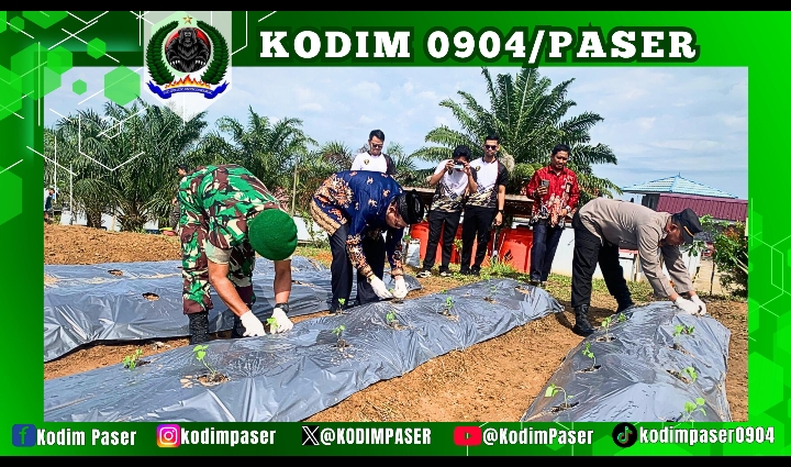 Kodim 0904/Psr, Korem 091/ASN, Kodam VI/Mlw – Pasi Ops (Perwira Seksi Oprasi) Kodim 0904/Psr Kapten Inf. Hari Subagio Mengikuti Kegiatan Penanaman Perdana Bibit Pertanian dan Perikanan di Sarana Asimilasi dan Edukasi (SAE) Dalam Rangka Program Ketahanan Pangan bertempat di Rutan Tanah Grogot, Jl. Kusuma Bangsa Km. 4 Tanah Grogot, Kab. Paser. Jumat (4/7/2025)