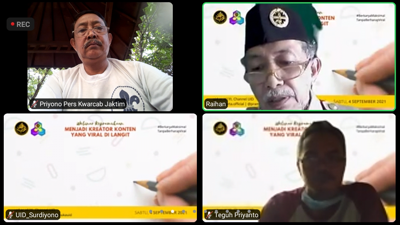 Marilah melalui webinar yang di gelar Universitas Islam Jakarta (UID) hari ini kita membangun interaksi dengan membuat berbagi informasi tentang ide brilian dan kekinian, Dimana kita bisa membuat konten dengan cepat apalagi dengan leher merah putih berseragam Pramuka mulailah menjadi anggota Pramuka yang memiliki gaya nalar berpikir kritis, kreatif dalam membuat konten penuh inovasi, baik di bidang seni tari, seni lukis, seni lukis dan kreativitas lain dalam bentuk digital. Kemudian diviralkan di youtube channel maupun media sosial lain. Seperti Gubernur Jawa Tengah Ganjar Pranowo mau melakukan aktivitas seni yang kemudian juga dipublikasikan melalui YouTube.