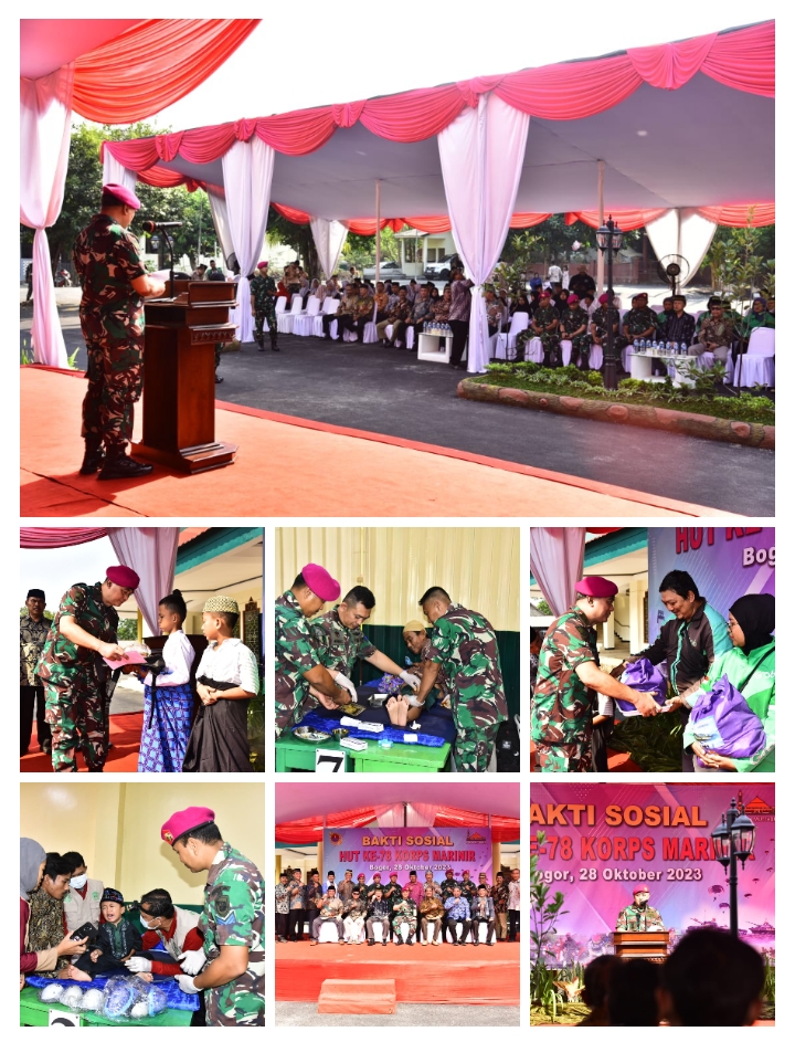Dispen Kormar (Ciangsana Bogor). Sambut peringatan HUT Ke-78 Korps Marinir Tahun 2023, Korps Marinir menggelar Bakti Sosial (Baksos) Khitanan Massal di Masjid Al-Muttaqin Ciangsana Gunung Putri Bogor, Sabtu (28/10/2023).